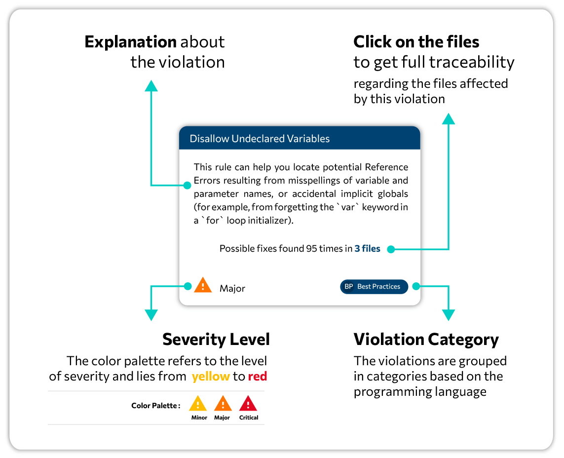 Cyclopt provides analysis of the violations in your software. These violations are classified as Critical, ** Major** and Minor.